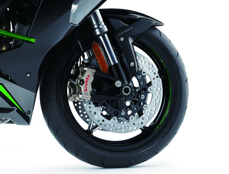 Dual radial-mount, opposed 4-piston Brembo Stylema® calipers, dual semi-floating 330mm discs, KIBS ABS